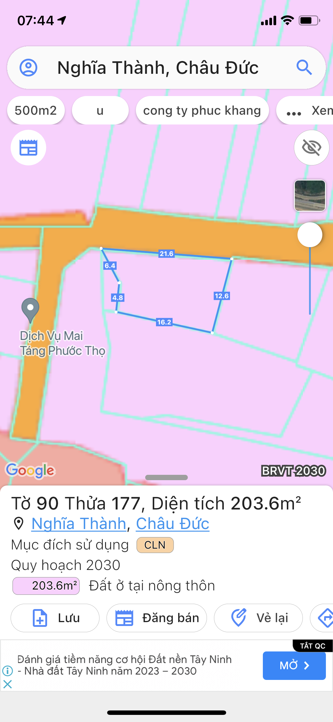 Diện tích: 203m² – thổ cư, pháp lý rõ ràng.